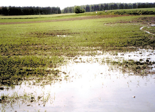 - zaleganie wody po opadach deszczu